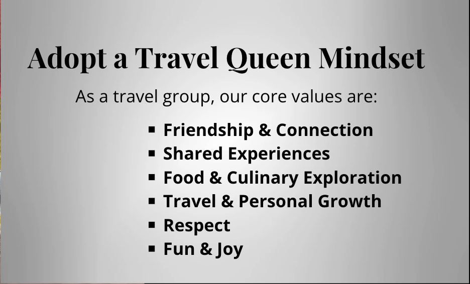 The purpose of Travel Queens is to provide a safe and inclusive environment for women to connect, travel, and create memorable moments together.